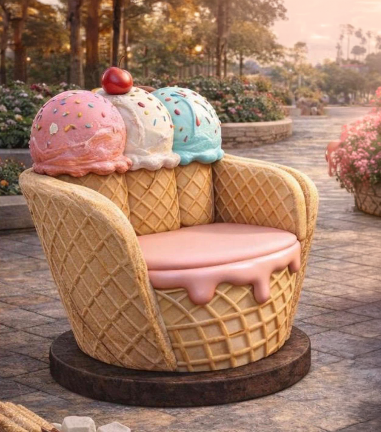 Decorative ice cream–themed armchair with waffle cone base