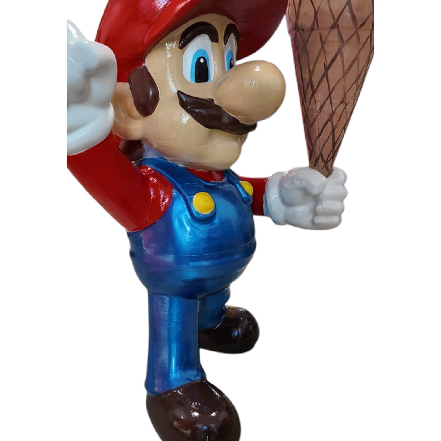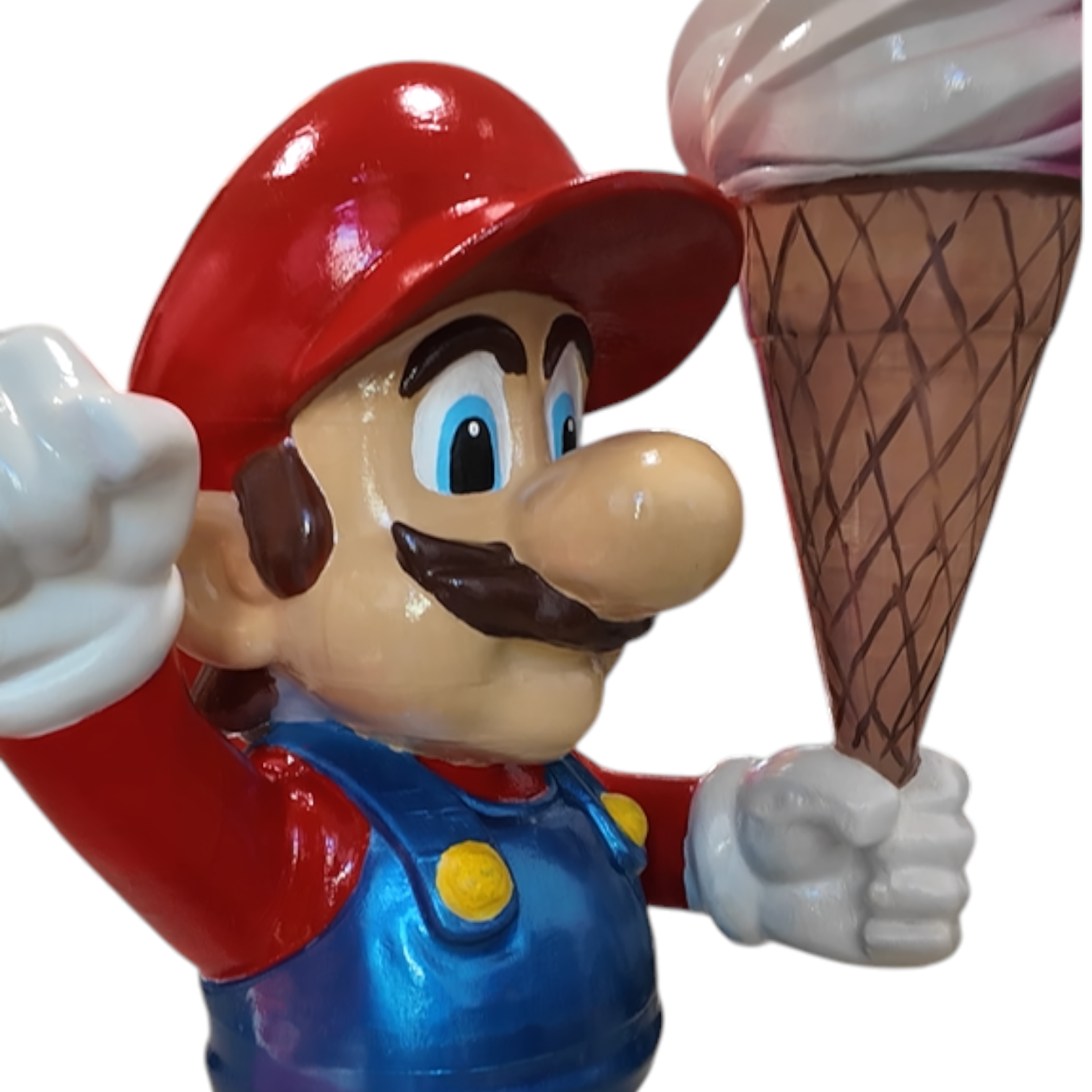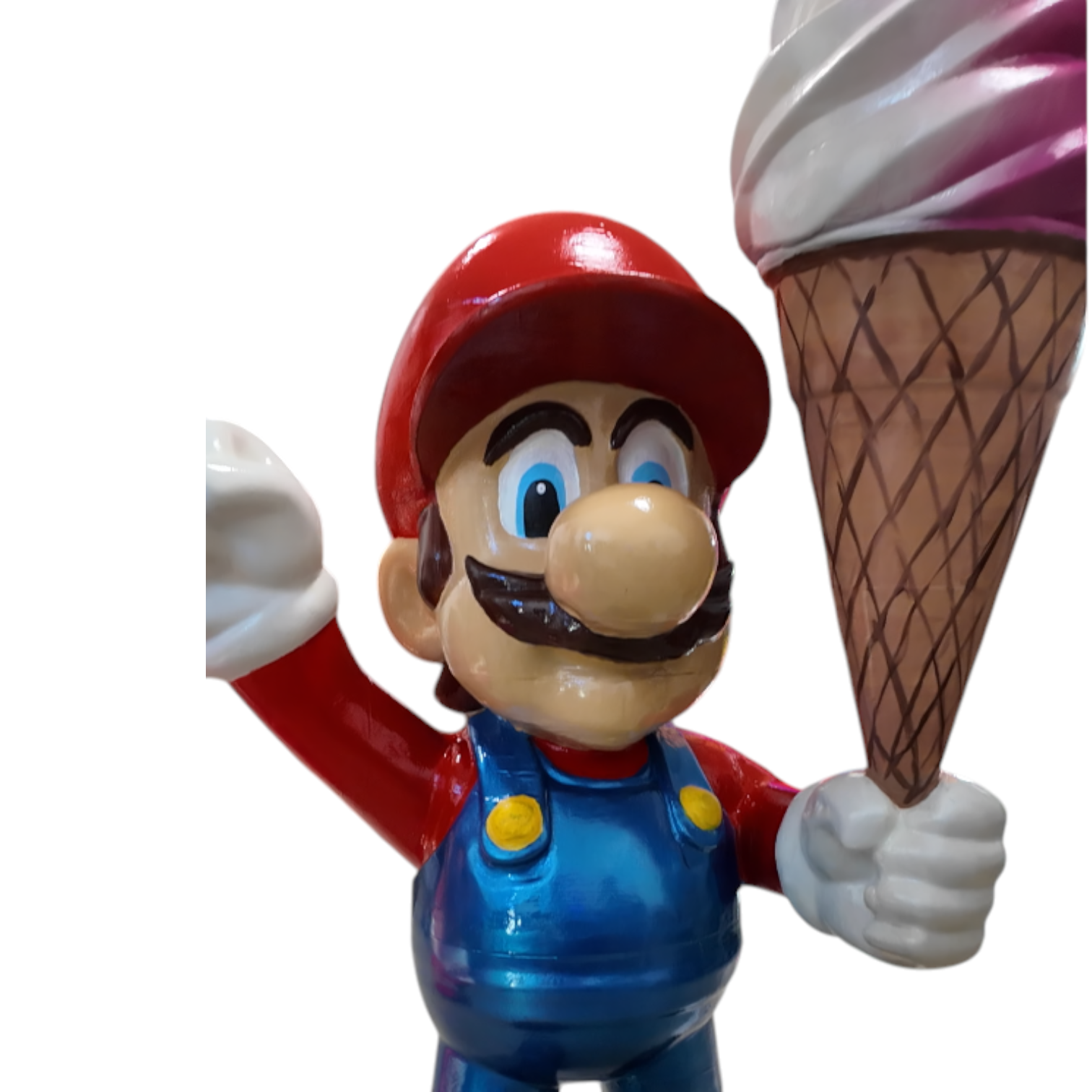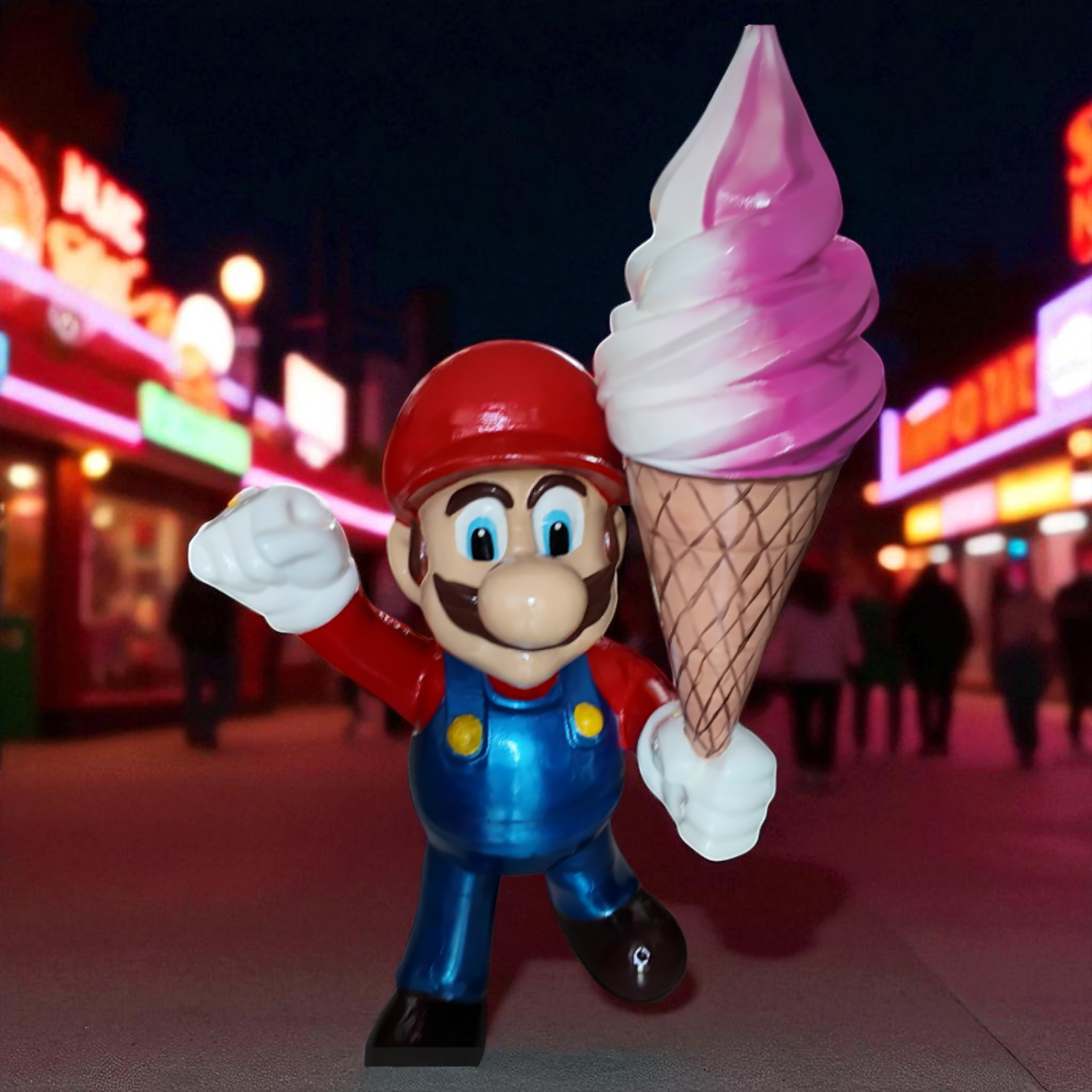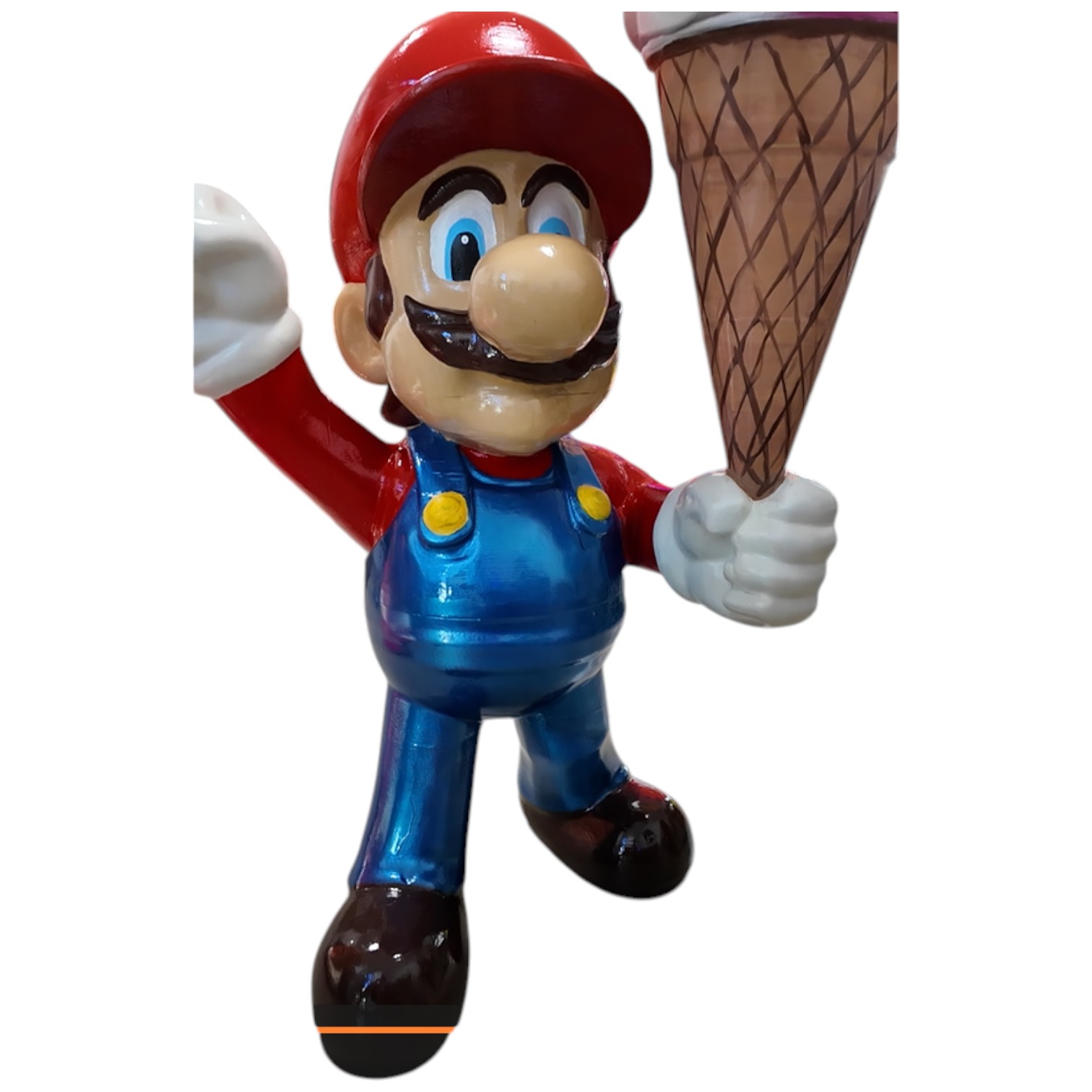 A fun and eye-catching 3D figure of Super Mario holding an ice cream. Perfect as a decorative piece to attract attention in shops, cafés, or themed businesses.